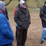 Nach ein paar grundsätzlichen Hinweisen zum Baumschnitt ging es in 4 Gruppen ans Werk. 2 Stunden lang wurde an lebenden Objekten die Kunst der Baumpflege demonstriert und praktiziert. Nach getaner Arbeit begab sich die Gruppe noch ins benachbarte Vereinsheim, um sich vom nasskalten Wetter zu erholen und zu stärken.